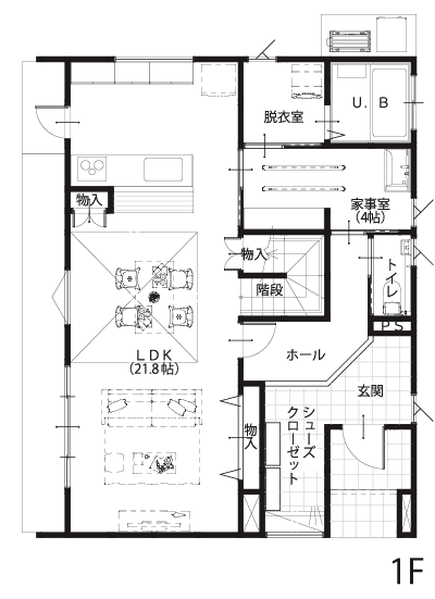 1F床面積 69.74㎡ (21.10坪)
