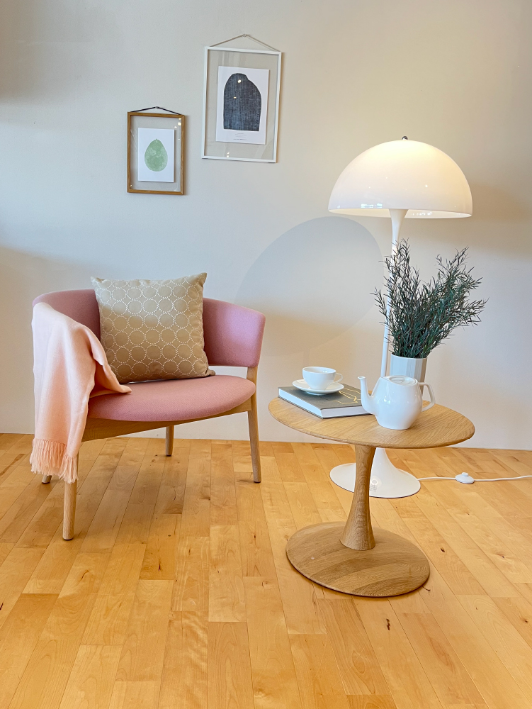 そして、その椅子を中心に、間接照明やラグ、コーヒーテーブルなどコーディネートされると、小さな空間でも自分だけの居場所となります。椅子を増やすと狭くなる場合は、ダイニングチェアと兼用できるものがおすすめです。