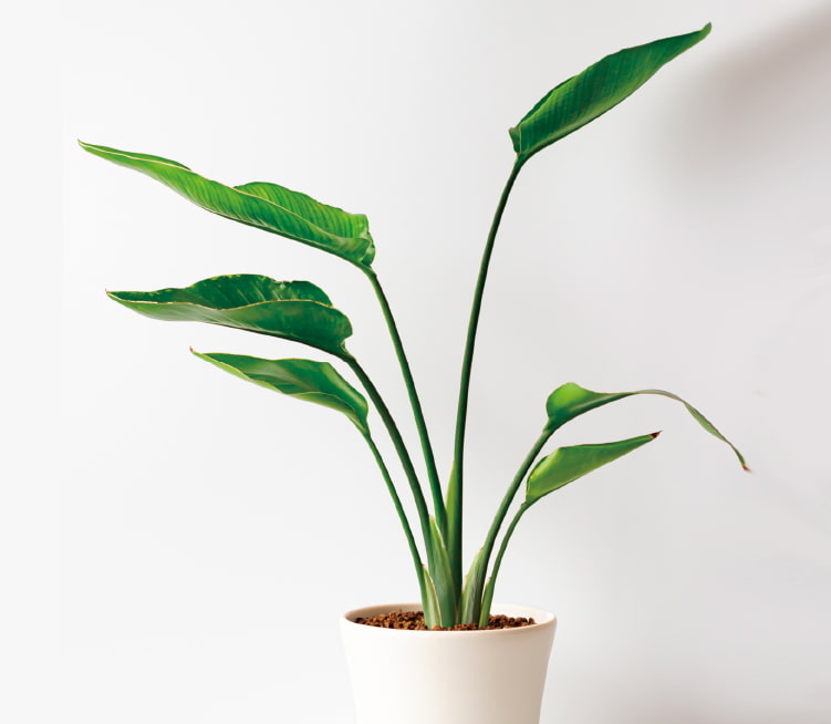 バショウ科ストレリチア属、南アフリカ原産の常緑多年草で別名は極楽鳥花。まるで鳥のような姿をした花を咲かせる植物です。高級な切り花で人気の「花」を楽しむレギネや、オーガスタのような「大きな葉」を楽しむ観葉植物があります。