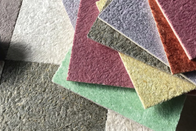 シルクプラスターの主原料となっているセルロースファイバーは、断熱材としてポピュラーな資材です。原材料は新聞紙・段ボール・木のチップなど。紙の繊維を基にした多孔質性により、優れた吸湿性、放湿性が特徴です。最大で重量比20%以上の水蒸気を含むとされており、高温多湿の日本の住宅に最適と言えます。