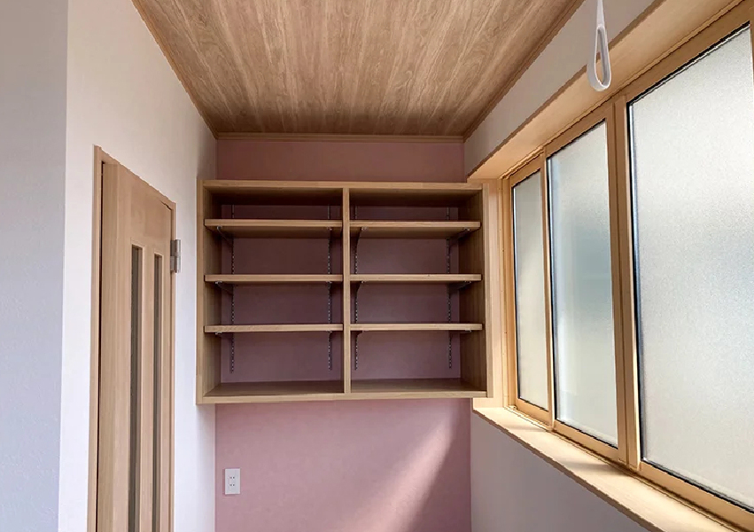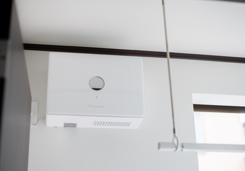 浴室と隣接することが多いランドリールーム。乾燥機や除湿機、温風乾燥機などの湿気対策はしっかりと。壁にエコカラットなど吸放湿性のある内装材を使用すればカビや匂い、結露対策により効果的。家の劣化対策にもつながります。