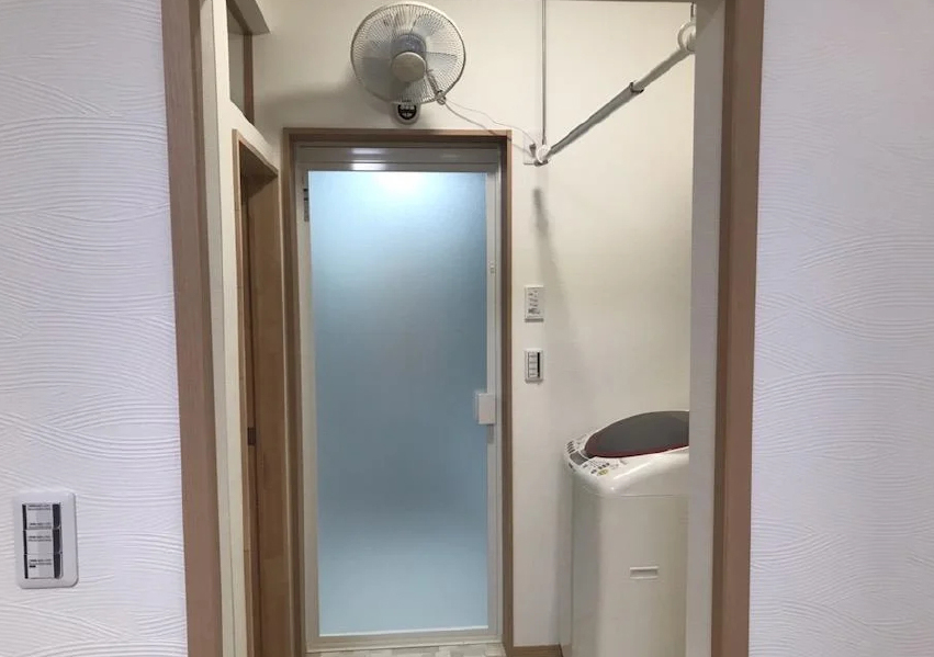 洗面脱衣室に扇風機とポールを取りつけるだけで機能性アップ