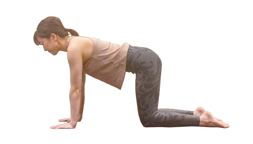 肩の下に手首、腰の下に膝がくるようにする。足の甲は寝かせておく。
