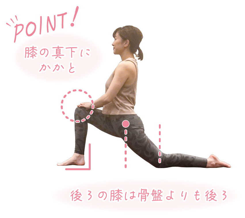 四つんばいの姿勢から右足を踏み出し上体を起こす。両手は右膝の上にのせ背すじを伸ばす。
