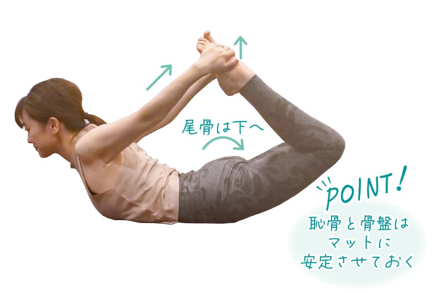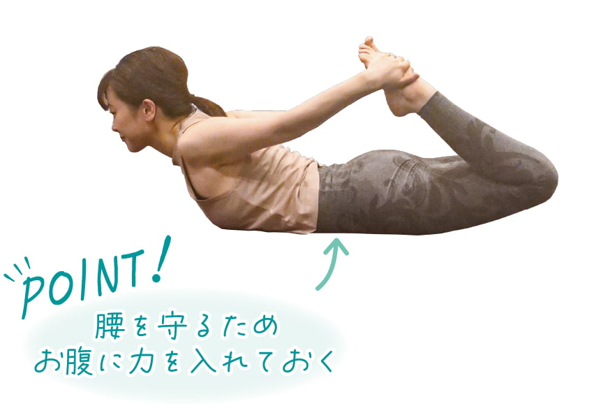 弓のポーズは、二の腕、背中、おしりを引き締める効果も期待できるのが嬉しいですね!