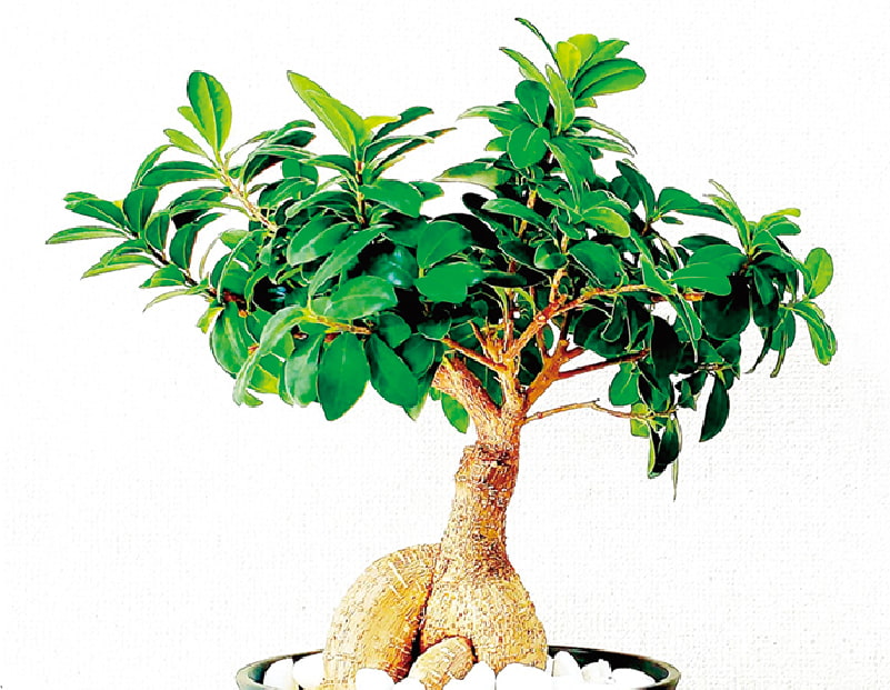 クワ科イチジク属、原産地は東南アジアなど熱帯~亜熱帯地方に分布する常緑高木。太い幹と濃い緑の葉は生命力を感じさせ、独特な形をしています。別名「多幸の木」とも呼ばれ良い運気を引き寄せると風水アイテムでも人気の観葉植物です。