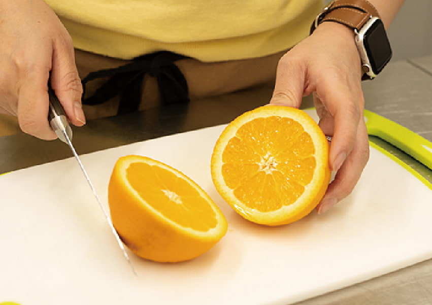 オレンジを1/2にカットする。