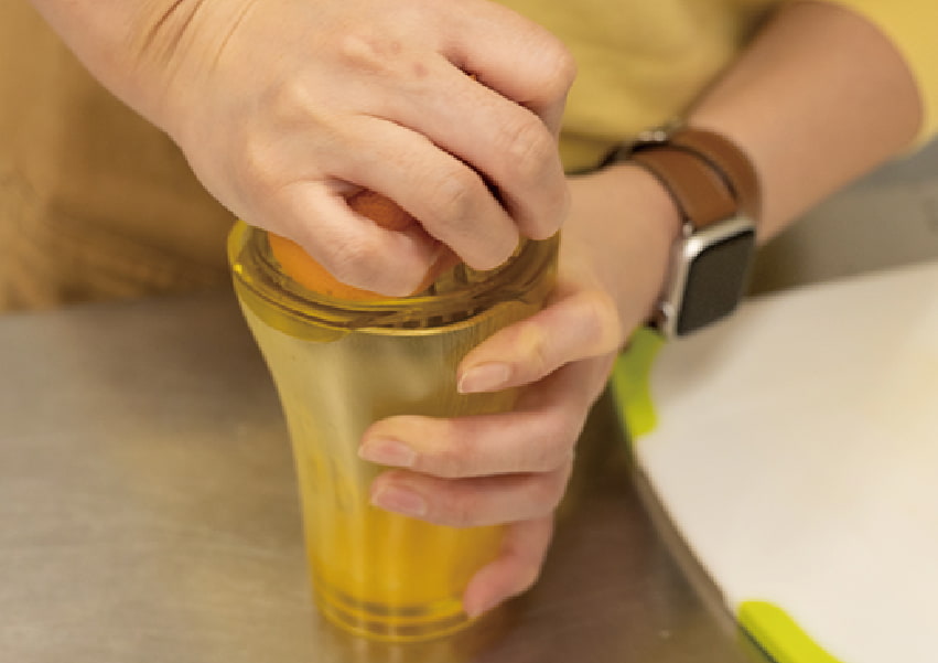 搾り器で大さじ4分の果汁を絞り出す。