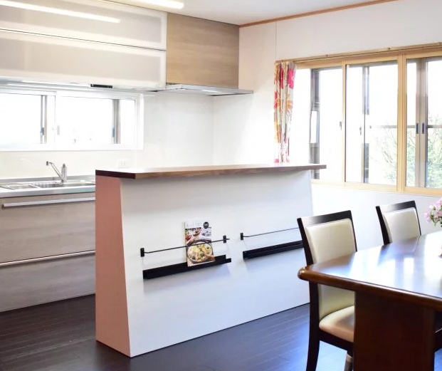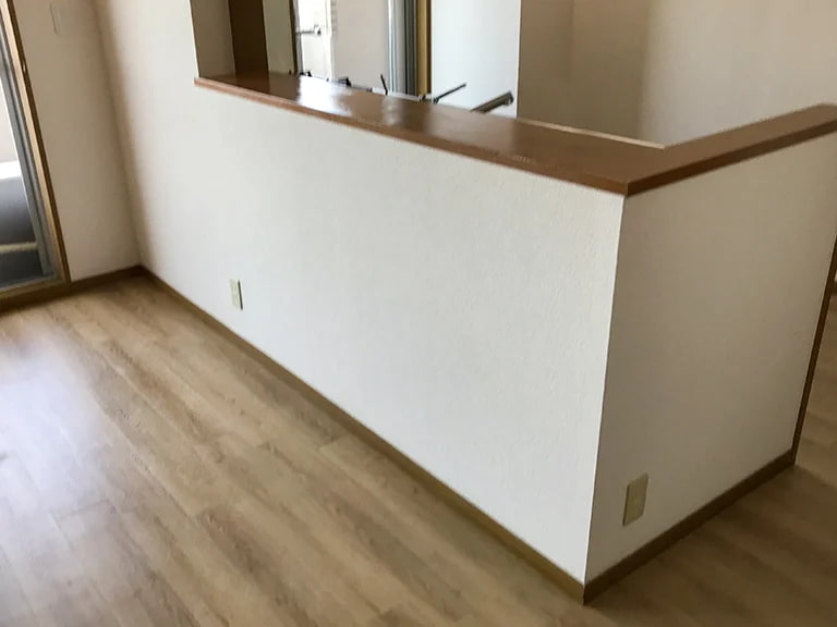 壁付キッチンにカウンターを設けて、オープンキッチン風にリフォームした事例