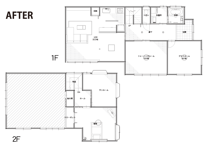 築50年の中古住宅のリフォーム。昔ながらの和室を住みやすく洋室に改装し、一見、ナチュラルな内装の普通の改修に見えますが、このリフォームの一番の見所は、自宅とは思えないほど本格的なトレーニングルームです!