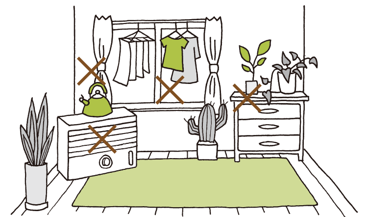 家具を置くときには、壁から5〜10cmほど離して設置するのがおすすめ。結露しやすい外壁側にはできるだけ置かない。