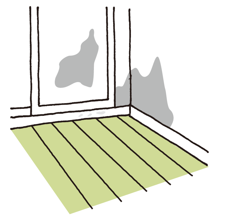 冬の電車や車の窓が曇るのもこのためです。お家で起こる結露は、木材の耐久性と強度をそこなう恐れがあるので注意しましょう。
