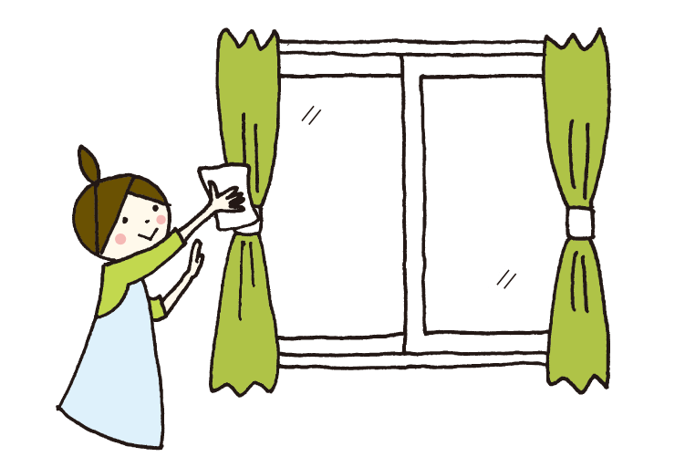 サッシのアルミ部分に水滴がついていたら、こまめに拭き取る。カーテンと窓サッシ戸の間も換気する。