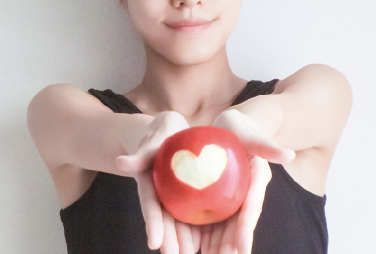 丸かじりすると歯のすき間にたまった歯垢が取り除かれ、歯を清潔に保つ歯磨き効果があります。さらに、硬いりんごをよく噛んで食べることで、歯や歯茎を丈夫にします。欧米では 「自然の歯ブラシ」と呼ばれています。