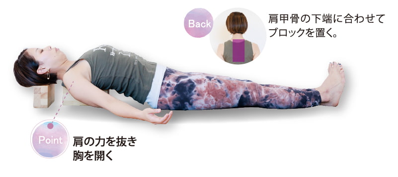 このとき、ブロックが腰椎に当たらない位置に置き、 仙骨に沿うように向きを調整。
