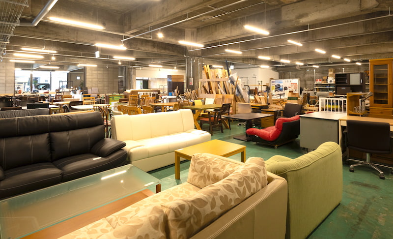 家具は2人がけソファが11,000円からとリーズナブル。どの品も早いもの勝ちの現品限りです