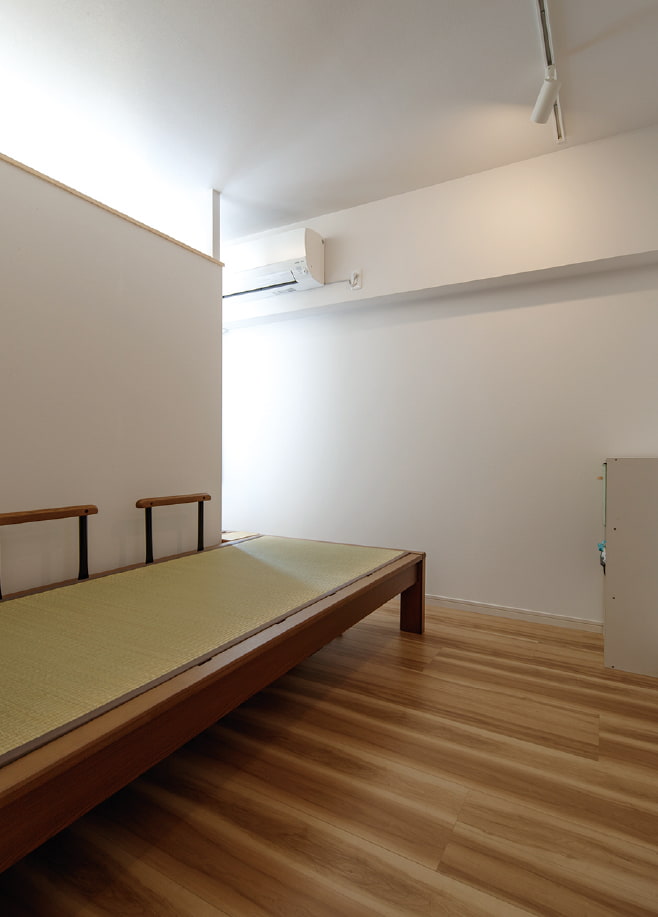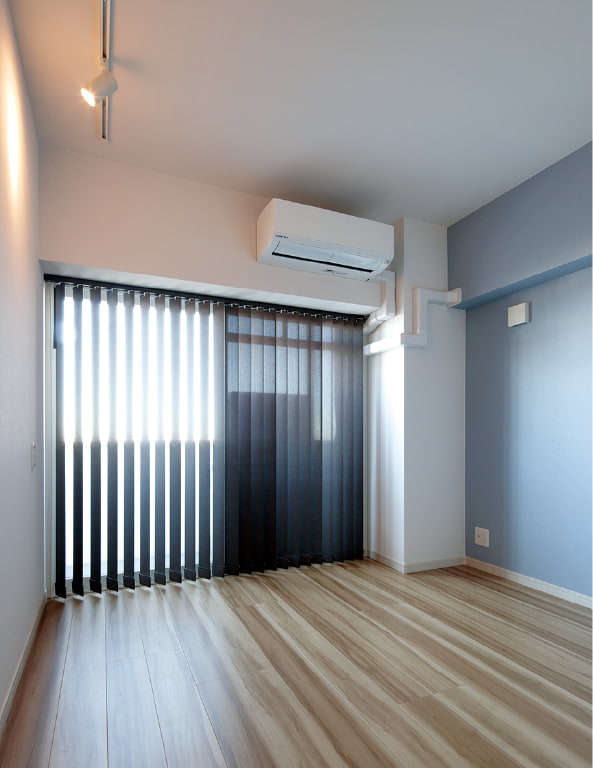 ご家族それぞれの個室を新しくつくり、お子様2人の部屋は、一面だけアクセントクロスでアレンジ。一部屋だけ窓のない部屋には、リビングからの明かりが入るように、天井近くにFIX窓をつくり、隣室との壁を天井まで全て塞がずに低い壁にするなどの工夫が凝らされています。リフォーム前には個室がなかったというご家族が、ひとりの時間もゆっくり楽しめるようになりました。