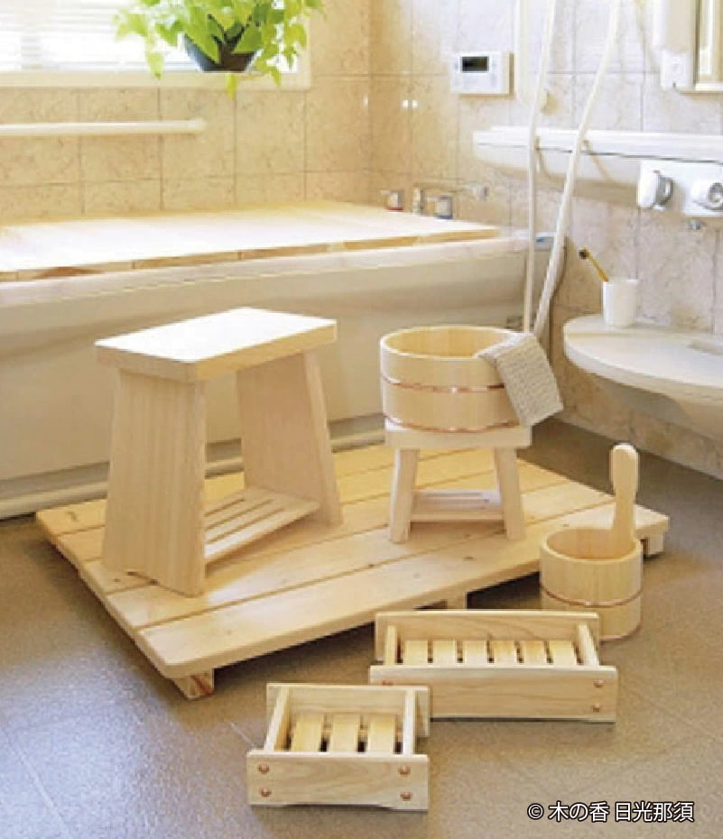 ヒノキは他の木に比べ、水に強く乾きやすい性質を持ちます。さらに、高い抗菌効果があるためカビにくく、お風呂に使うのに適している木材なのです。