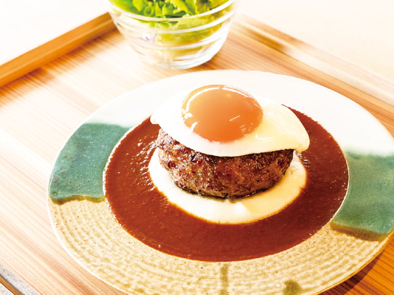 新鮮な地元食材を使用した充実の朝定食や、焼肉ハウス大将軍がプロデュースする本格和牛ハンバーグ、カレーなども味わえるとあり、和食・洋食どちらもこだわりのある料理が評判のカフェ食堂。食器は趣のある三助焼のアウトレットを採用し「循環」をテーマにした取り組みを始めています。