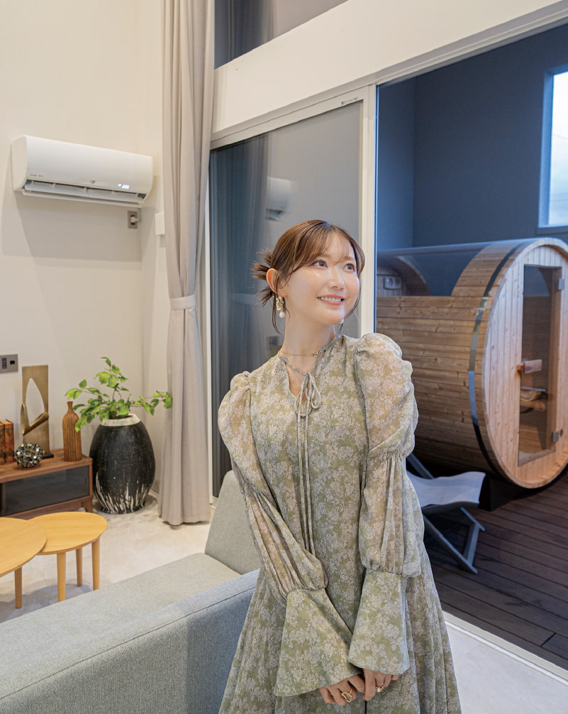 また、一方では、ファッションやデザイン、サウナ、音楽など、菅野さん自身の「好き」を盛り込んだ空間にもなっています。仕事や家事、育児が忙しくても、好きなことを諦めたくない、そんな全ての女性に向けて、おしゃれや趣味を楽しみ、家での時間を豊かにするエッセンスが散りばめられた住まいです。