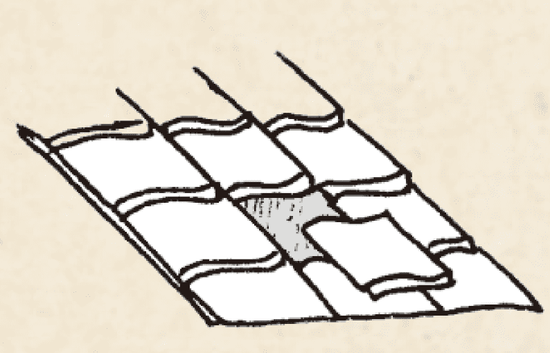 陶器瓦は寿命が長く、色落ちがあまりありません。しかし、瓦の下の野地板は傷みやすいので、天井裏の点検口からのぞいて、屋根に打ち付けてある板が腐っていないか点検をしましょう。瓦は、汚れがひどい場合は洗うか、部分的に交換をしておきましょう。屋根のコケや、枯葉は雨水を引き込む恐れがあるので、早めに取り除きます。