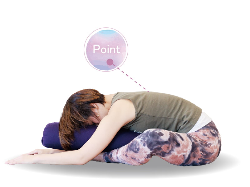 背中の張り、腰から脚の緊張をゆるめることで、体を睡眠モードへと導きます。 骨盤底筋群もゆるむので、イライラしたり緊張したり眠れない人にも効果的。