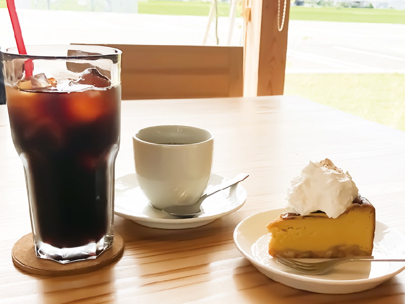 かぼちゃを丸ごと蒸して旨味を引き出す自家製かぼちゃのチーズケーキなど、カフェメニューも人気。ドリンクはALL250円