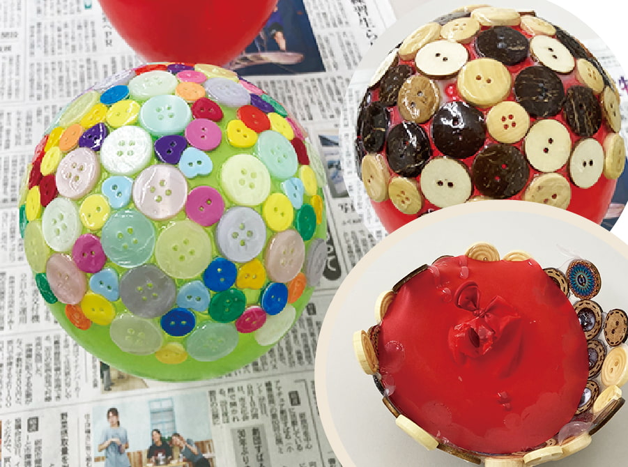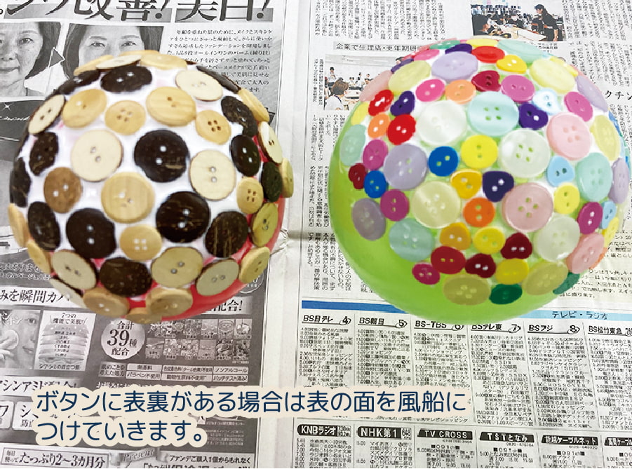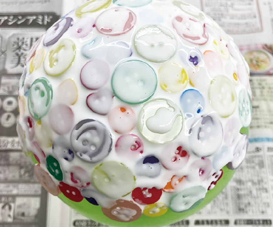 膨らませた風船にボンドでボタンを貼り付けていくだけ!