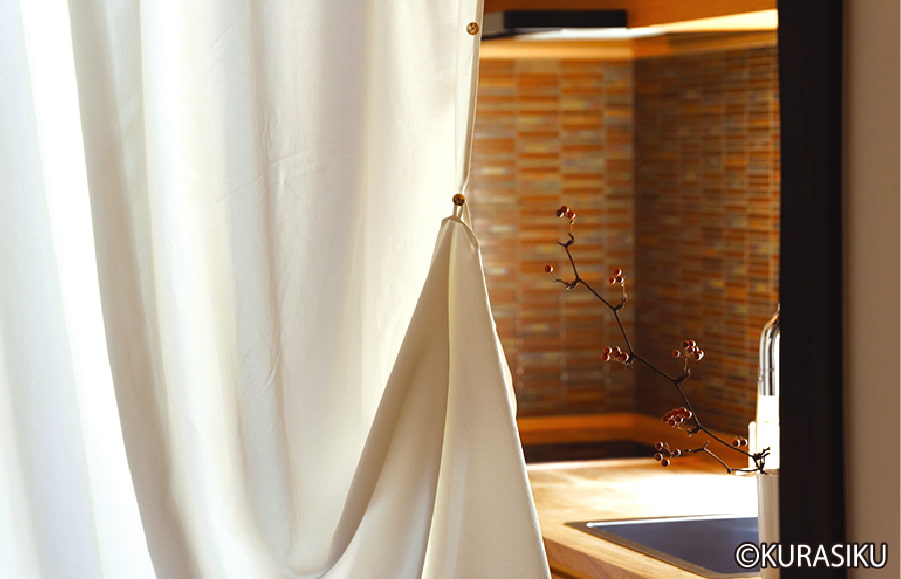 和紙は紫外線・赤外線をカットする素材です。和紙の布でできたカーテンは、室内に入る紫外線や暑さを和らげてくれます。肌触りも良く、ホコリを寄せ付けない利点もあります。