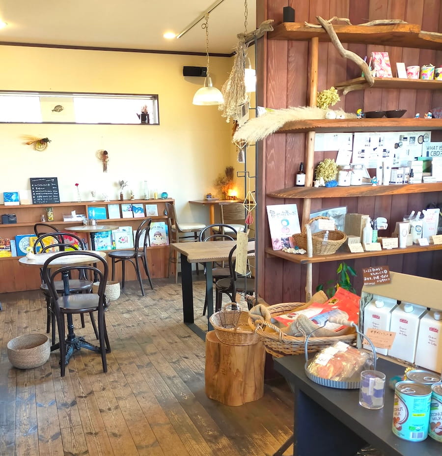 素材にも焙煎にもこだわったコーヒー屋さん。「誰が来ても楽しめてホッとできるお店でありたい」と、店内には自然食品や雑貨、お子様向けの絵本や駄菓子なども置いてあります。