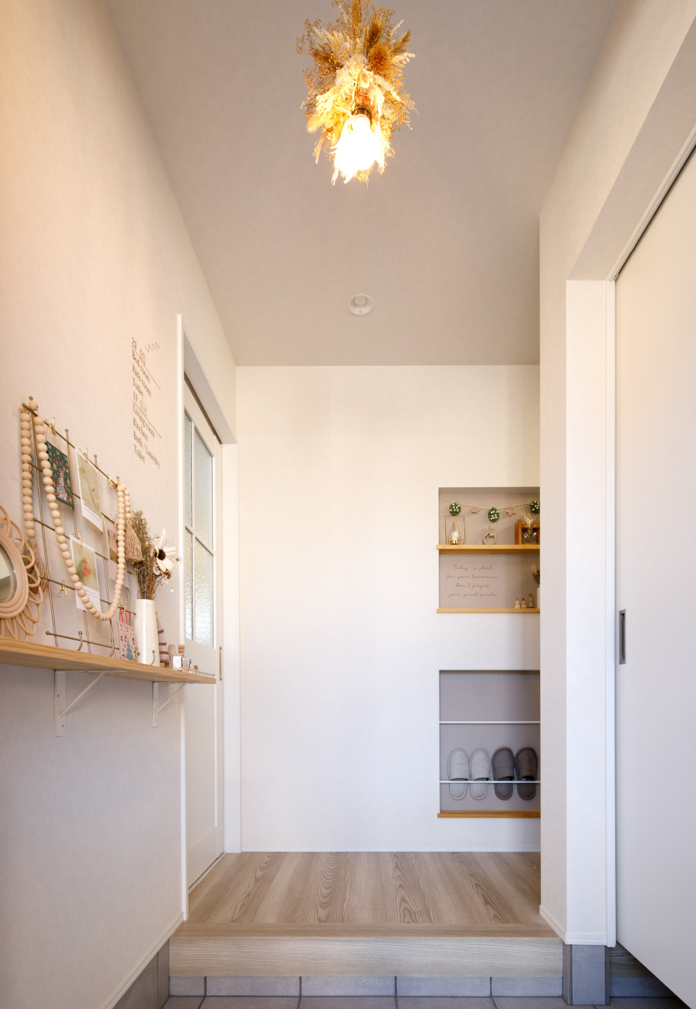 「元々、インテリアにはさほど興味はなかったんです」という奥様の言葉が嘘のように、どこを見ても完成され尽くしたモデルハウスのようなF様邸。内装は全て白とグレージュ、淡いナチュラルウッドで統一され、隅々までこだわりが見られます。