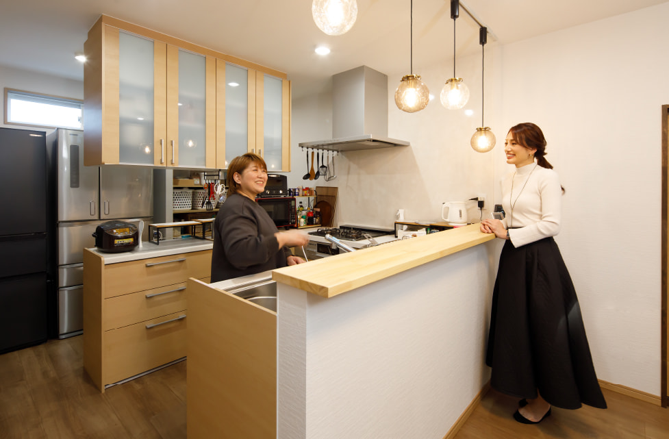 壁付けキッチンから対面式キッチンへ。家族とのコミュニケーションも円滑になります