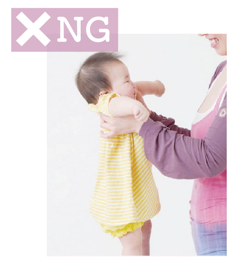 赤ちゃんの脇の下で引っ掛けるように支えたり、不安定な抱き方は赤ちゃんの体への負担に。
