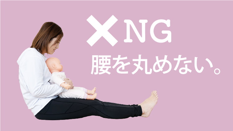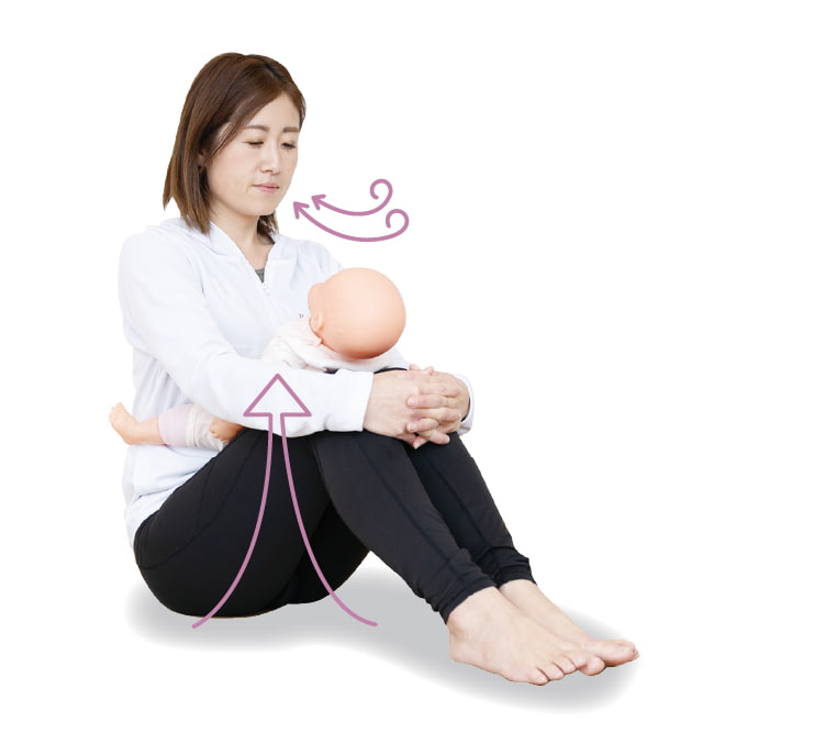 坐骨を立てて座り、赤ちゃんのお腹の前で手を組む