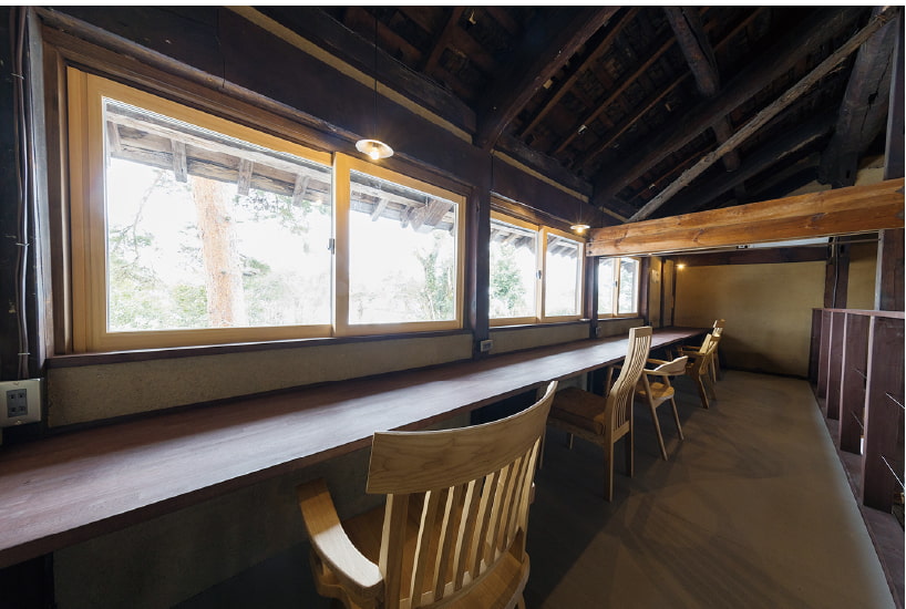 剱岳を望む2階のカウンター席にはコンセントがあるので、リモートワークにもおすすめ