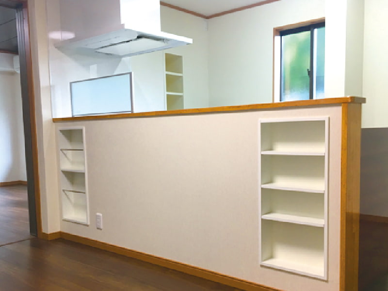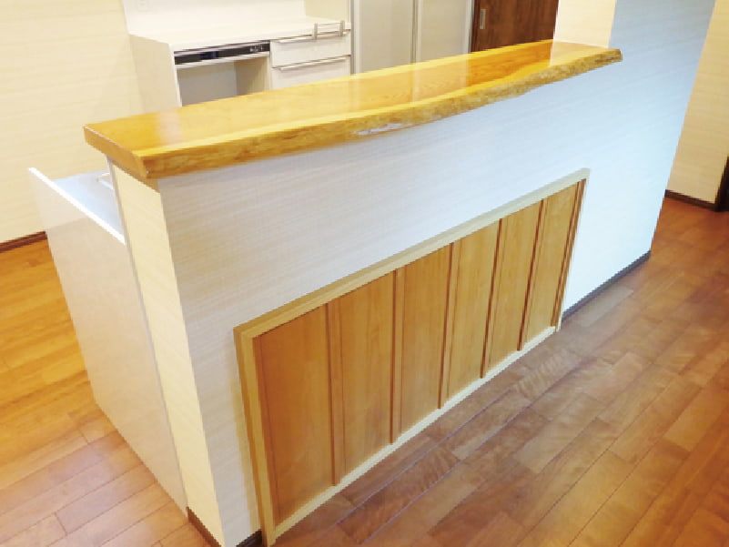 リフォーム前の部屋に使われていた木材などの部材を天板やカウンターの装飾に再利用して思い出を残せます。