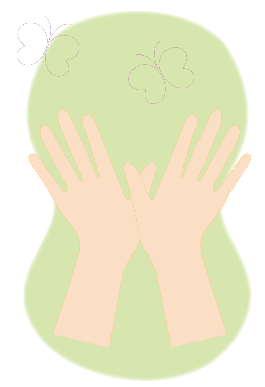 ロディの後ろに立ちます。両手を伸ばし、手の親指と親指を合わせ、ちょうちょを作るように準備しましょう。