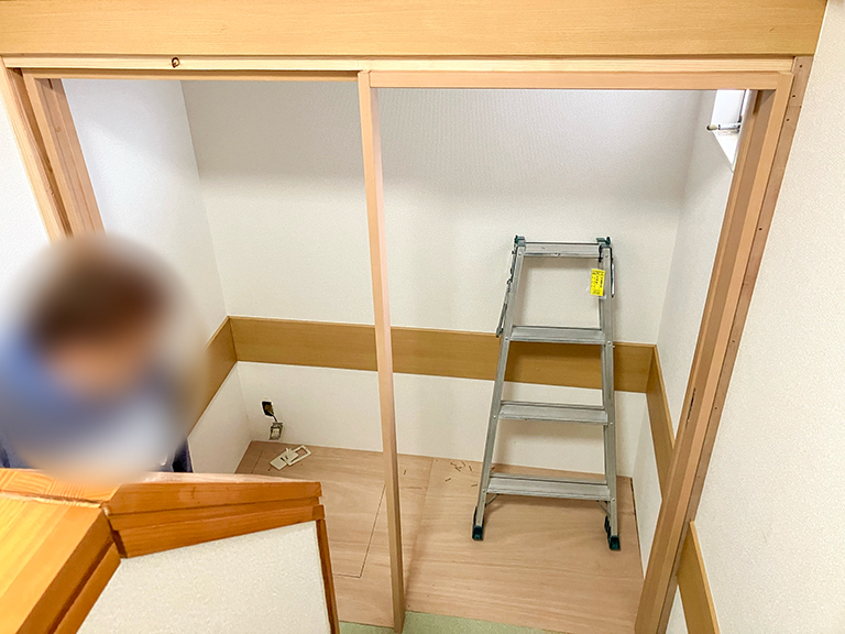 廊下や踊り場、階段などに全く空きスペースがない場合に、クローゼットなどの収納スペースを削って設置するケースはよくあります。既存の廊下や部屋のスペースを削ることなくトイレを設置できるので、現状との違和感がありません。実際にトイレに必要なスペースは1〜2㎡程度あれば十分なので、大きめのクローゼットなら一部をトイレスペースに活用することもできるでしょう。
