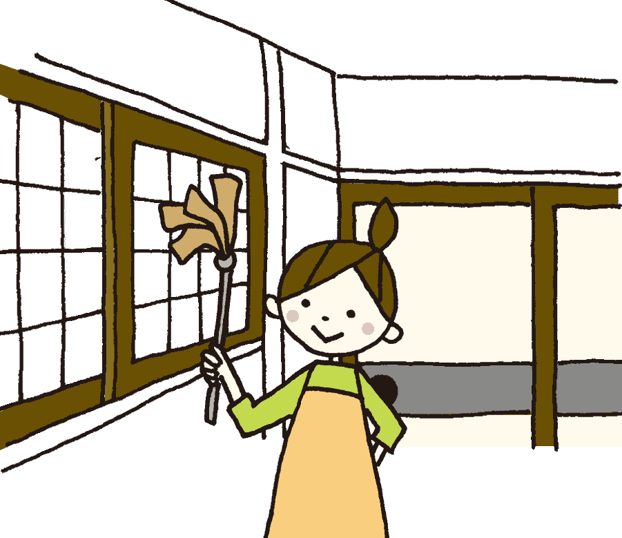 | 大きなブラシや軽くはたきをかけてホコリをとる。 | |