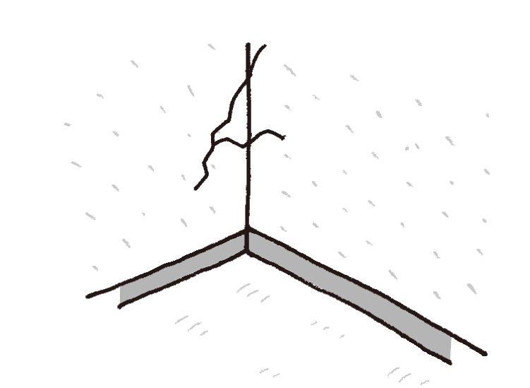 同じ色のパテをひびに沿って塗る。はみ出た部分をかき落とし、サンドペーパーでならす。