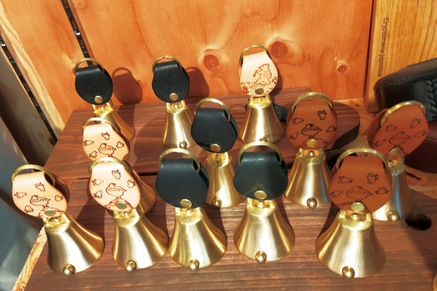 立山をテーマにデザインしたオリジナル手ぬぐいや雷鳥プリントの熊ベル