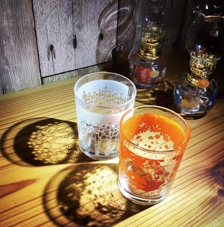 炎を灯すことでイラストが照らされるオイルランプは、インテリアディスプレイにしても素敵