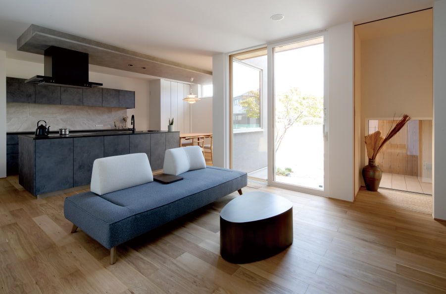 「器」の最大の魅力は、家族構成、時間の変化、そして価値観の変遷を柔軟に受け入れられるフレキシブルな設計。例えば、リビングに隣接した和室や縁側のあるテラスは、リビングの延長として使ったり、プライベートな個室、非日常を味わう空間としてなど、自在に役割を変えることができます。