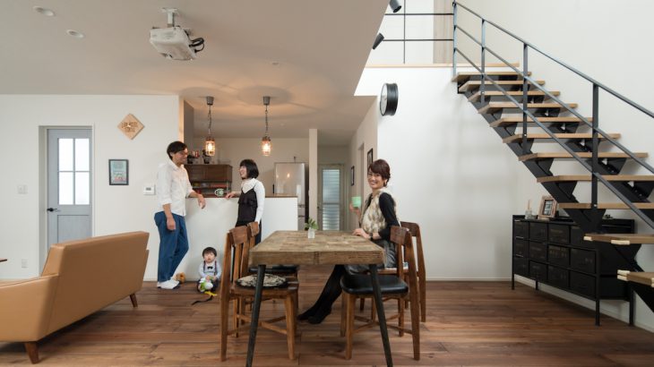 自分好みにカスタマイズできるZERO-CUBEだから、アンティーク調のダイニングテーブルや照明など雰囲気のある家具が生きる